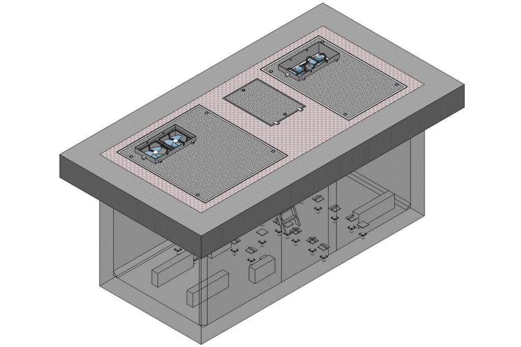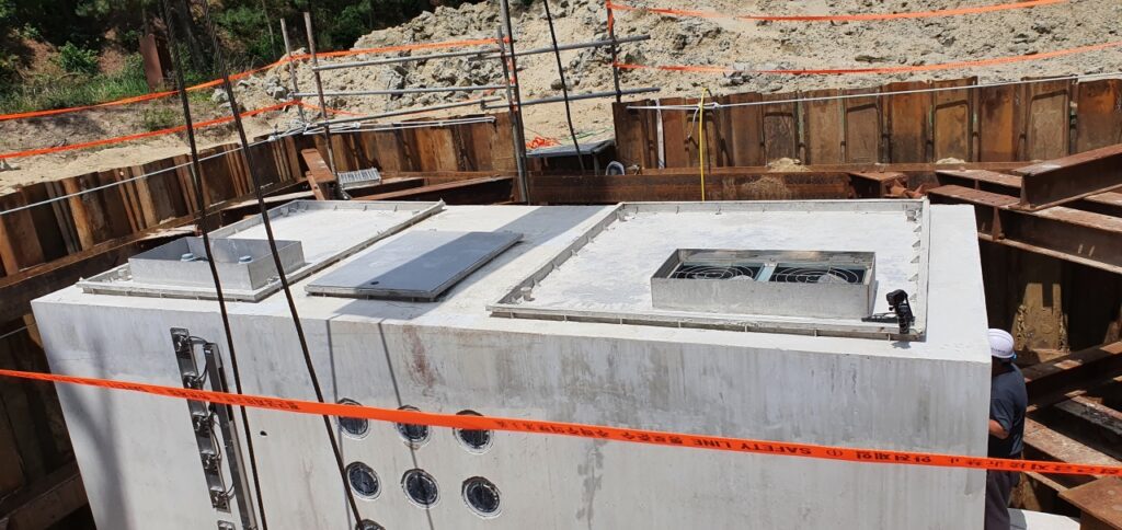 3. 환기팬을 설치하여 전기 시설물의 과열을 방지하고, 환기구 상부에는 수위 감지 센서를 장치하여 국지성 폭우로 인하여 급격하게 수위가 상승 하게 되면 장비반입구 하단에 설치된 차수문이 폐쇄되면서 전기 시설물을 보호 할 수 있습니다.