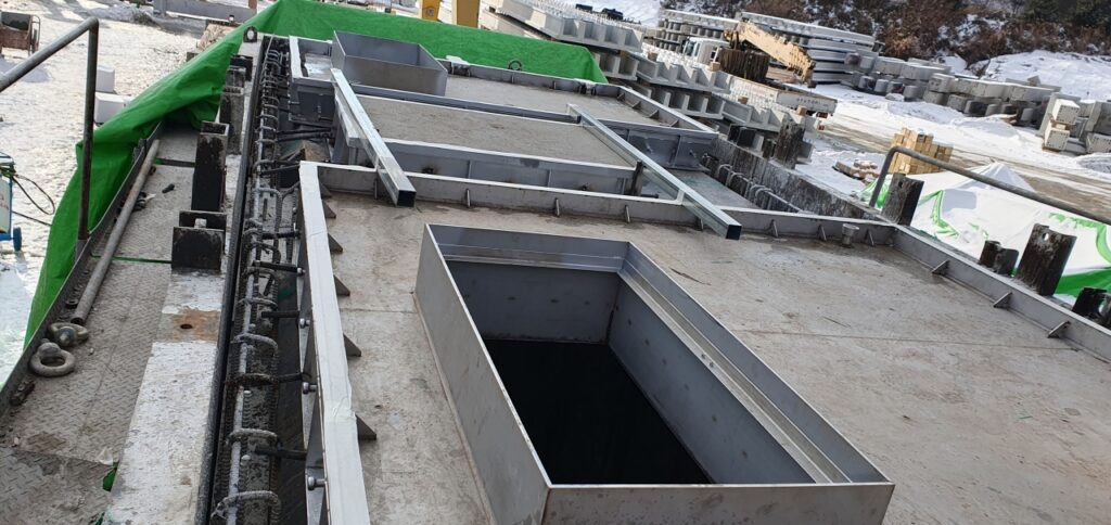 1.이중 패킹 및 단열재를 적용하여 방수 기능,결로 방지,소음이 방지 되고 프레임에 물 끊기를 적용 하여 미세 누수를 방지하고 2단 프레임을 적용하여 장비반입구 프레임과 덮개 사이에 이물 축적 현상을 방지하여 장비반입구 개폐가 원활하고,장비반입구를 특수 형상의 잠금볼트를 적용하여 보안성이 확보됨